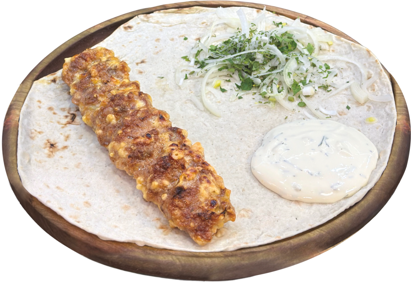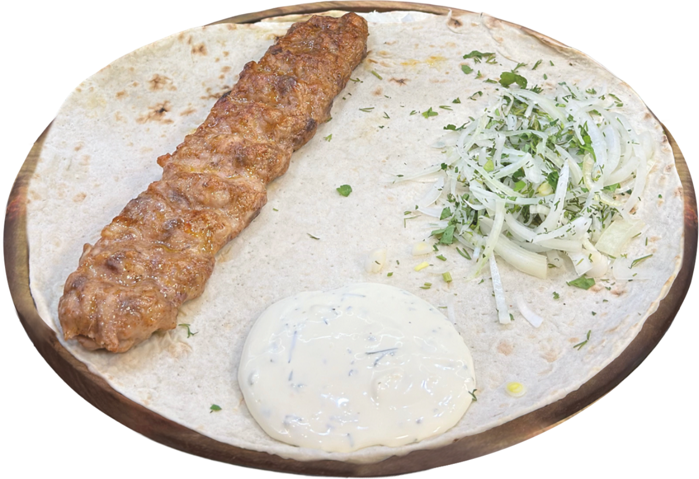 Фарш из баранины, лук репчатый, петрушка, укроп, чесночный соус, лаваш
